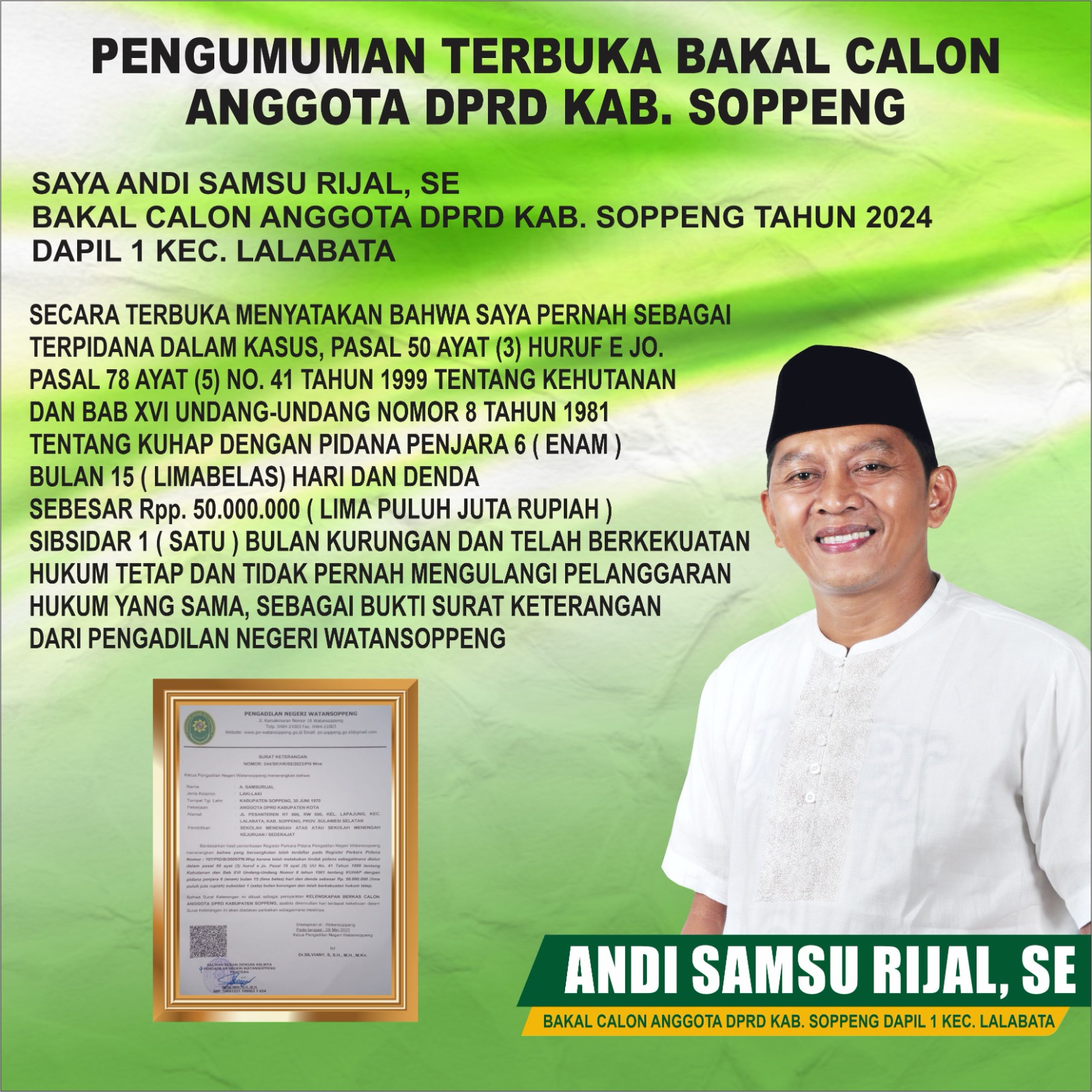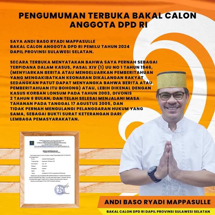 Andi Baso Ryadi Mappasule Resmi Mendaftarkan diri Sebagai Bakal Calon Anggota DPD RI Tahun 2024 by Andi Baso TG 15 Mei 2023 0 ...